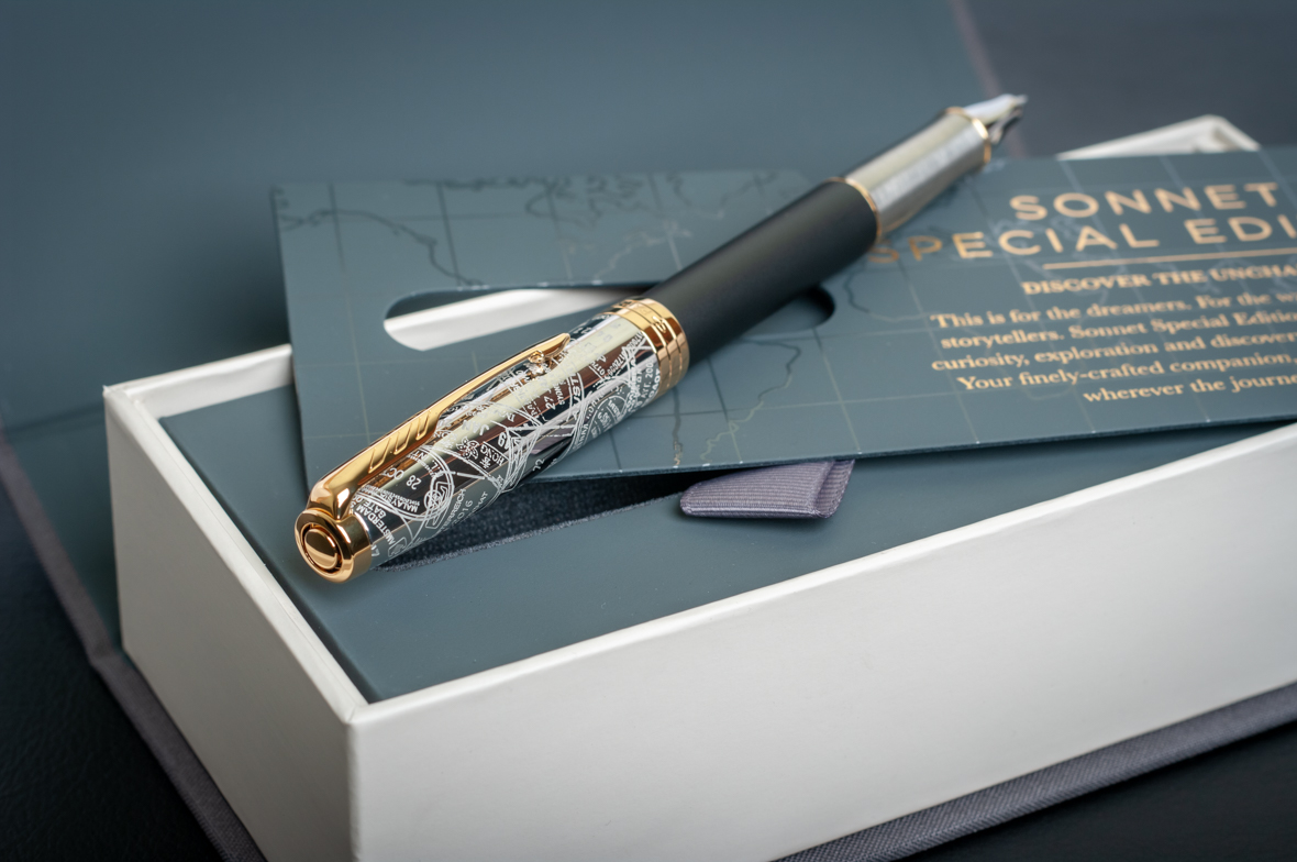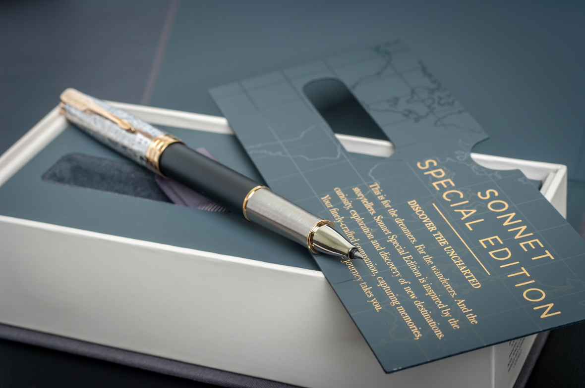 Ручка роллер Parker Sonnet Special Edition 2018 Impression Matte Black GT от официального дилера Parker в Нижнем Тагиле. Вы можете дополнительно заказать гравировку, которая подчеркнет Вашу оригинальность и придаст памятность статусному подарку. Все ручки Паркер поставляются в фирменном футляре.