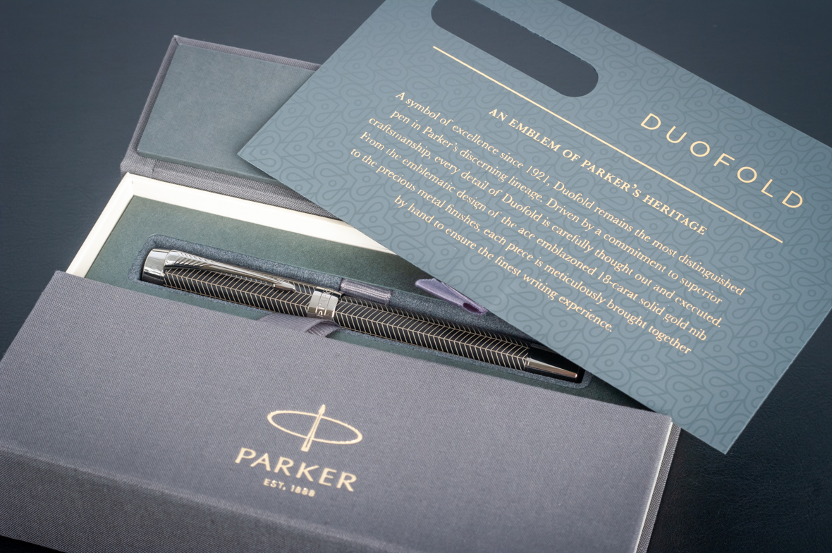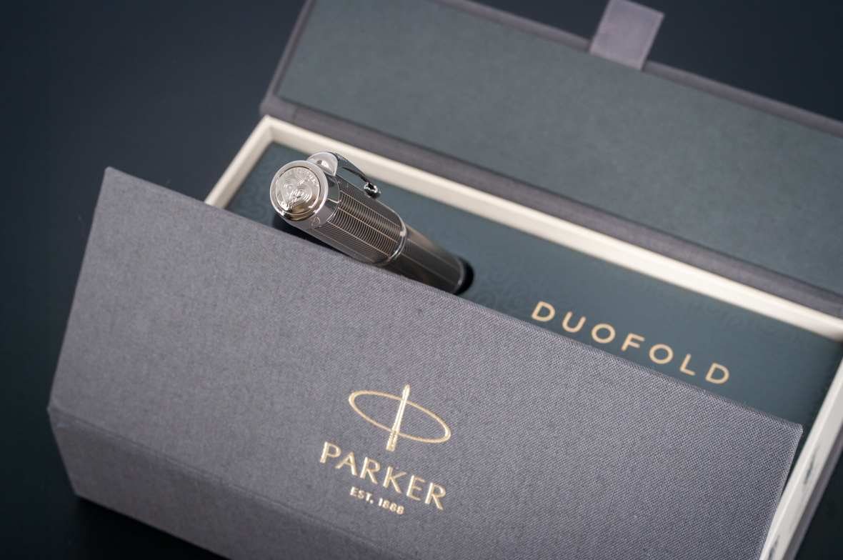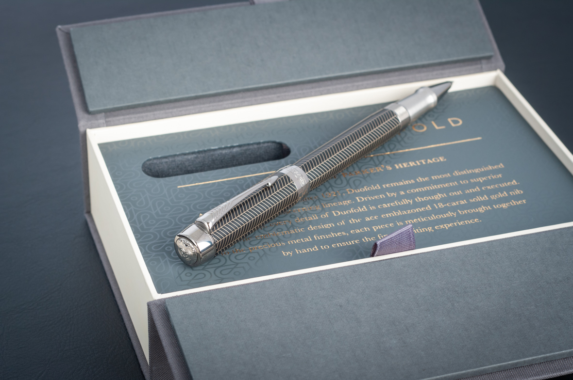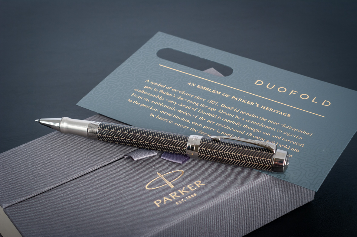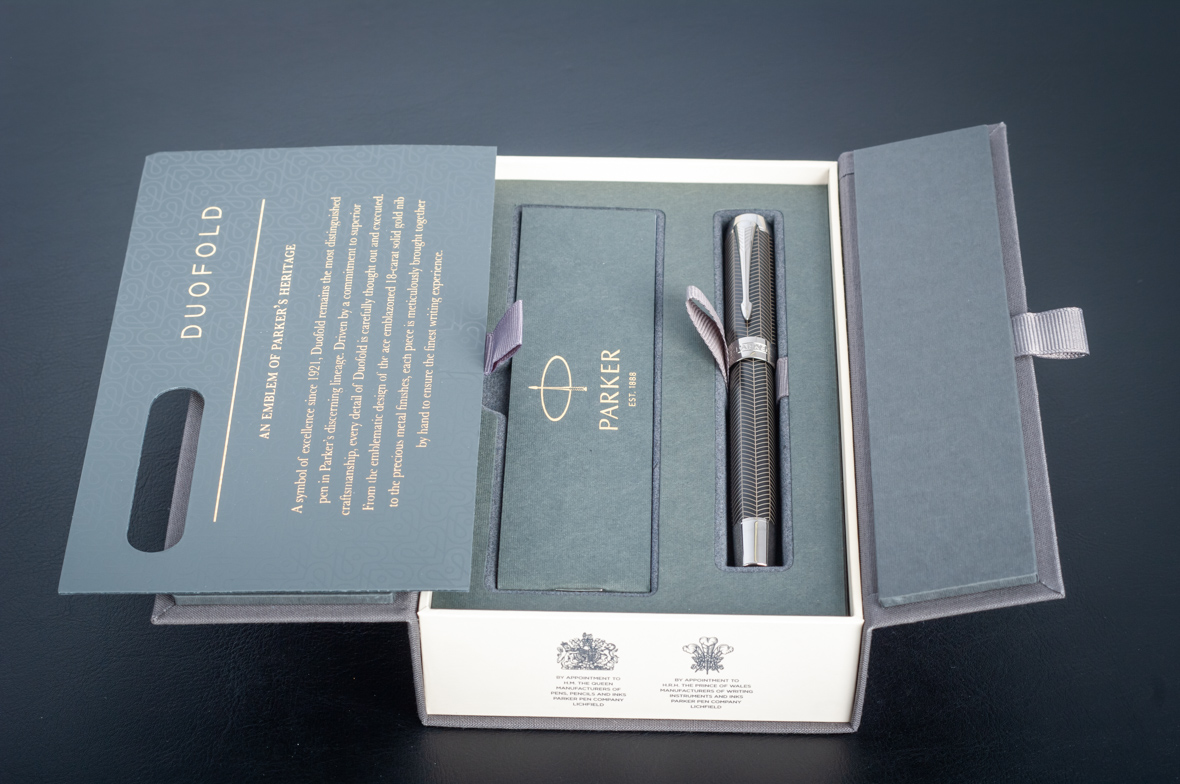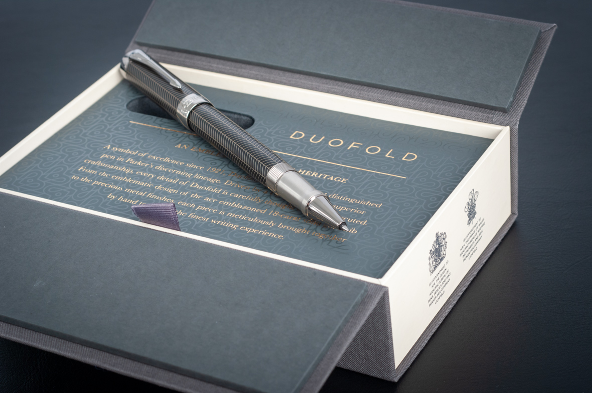 Ручка роллер Parker Duofold Prestige Centennial Black Chevron CT от официального дилера Parker в Нижнем Тагиле. Вы можете дополнительно заказать гравировку, которая подчеркнет Вашу оригинальность и придаст памятность статусному подарку. Все ручки Паркер поставляются в фирменном футляре.